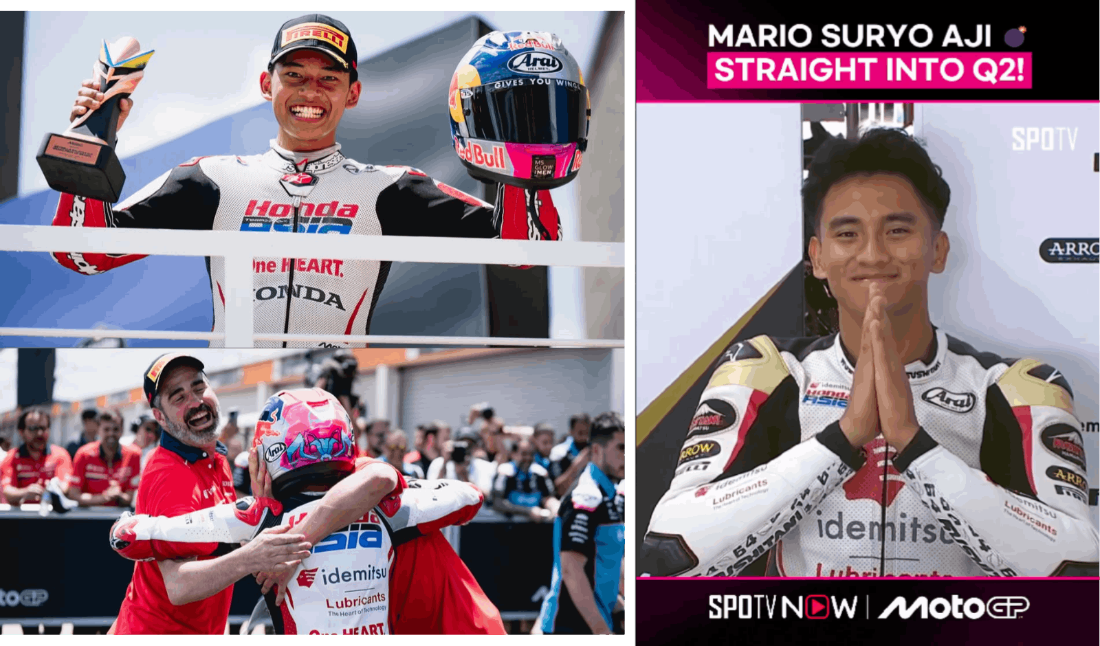 Minggu malam, 22 Maret 2026. Ribuan kilometer dari Indonesia, di Sirkuit Ayrton Senna, Goiania, Brasil, nama Veda Ega Pratama untuk pertama kalinya berkumandang di podium kejuaraan dunia. Pemuda 17 tahun itu finis ketiga di kelas Moto3, dan dengan itu, mencatatkan dirinya sebagai pembalap Indonesia pertama yang naik podium dalam sejarah Grand Prix. Sementara di kelas Moto2, seniornya, Mario Suryo Aji, telah lebih dulu membuktikan bahwa pembalap Indonesia bisa bertahan di level dunia selama lima musim berturut-turut.